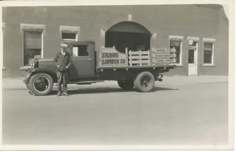 The Stearns Lumber Co. was founded in February, 1892, when E.J. Stearns purchased the tiny building and limited stock of the Stillwater Lumber company, then located in the corner of Main Street and Second Avenue. He started in a small way with a one-room office and no storage sheds. Adopting the slogan, “Where the Good Grades Come From”, the business was operated on the principles of good materials, convenient service and square dealing.