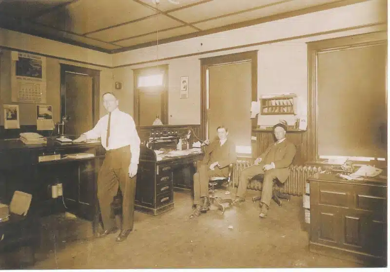 In the meantime, Spencer’s two sons had grown up and prepared themselves to carry on the business founded by their grandfather in pioneer times. In 1926, expansion was needed at the Hutchinson location. An office wing and a new warehouse were added to give customers more prompt and efficient service. At that time the little one-room office building which had remained on the Stearns corner for sentimental reasons was taken away.