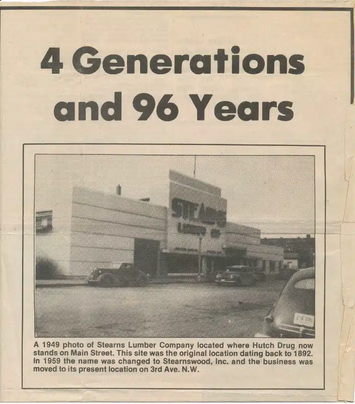 In 1959, the Stearns Lumber Co. changed its name to Stearnswood Inc.