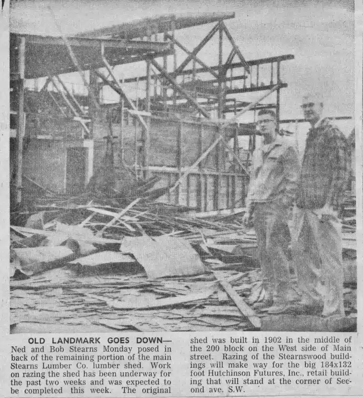 Spencer’s sons, Robert and Ned, both worked with their father in managing Stearns Lumber Co. until Spencer’s death in 1957, when Robert became president of the company. By this time, the Hutchinson yard was large enough to serve a wide trading area and all the smaller branches were sold off and efforts were concentrated in Hutchinson.