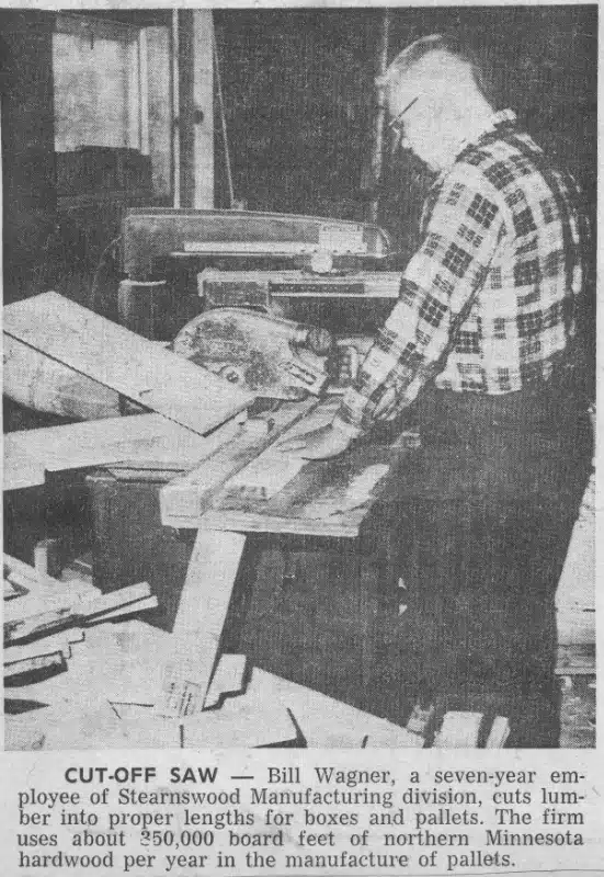 The name changed to reflect the change in business emphasis and moved to its current location at 3rd Avenue N.W. Two-thirds of the new location was taken up by the retail branch while the balance was used by the small-but-growing manufacturing division that built wooden pallets, crates, boxes, and affiliated packaging. The retail and modular home building divisions were sold in 1972 and Stearnswood began concentrating on the business of designing and manufacturing wooden shipping containers and related packaging materials.