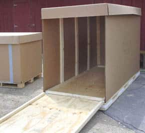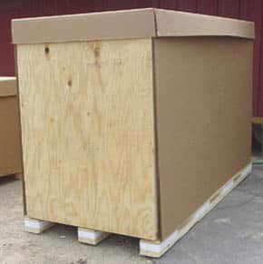 The sides and top cap were constructed from triplewall corrugated with wood members spaced evenly throughout the interior to aid in stacking and durability during the shipping process.